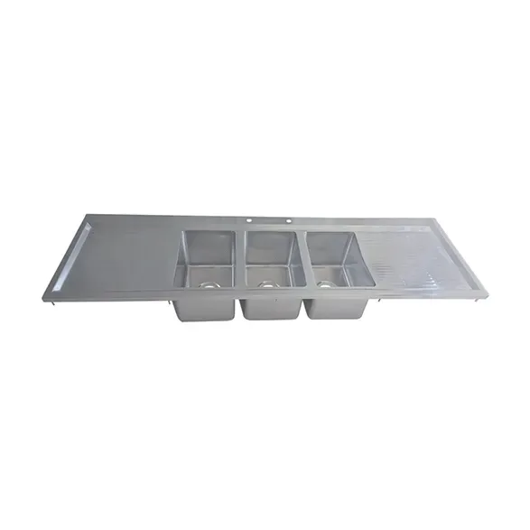 Fuel your restaurant's success with the BK Resources, BK-DIS-1014-3-18T-PG Drop-In Sink. This three-compartment sink is designed to meet the demands of a busy commercial kitchen. With an overall size of 70-1/8"W x 20"D x 10-5/8"H, it provides ample space for washing, rinsing, and sanitizing dishes. The three 10" wide x 14" front-to-back x 10" deep compartments allow for efficient workflow and can accommodate large pots and pans. The sink also features 18" drainboards on the left and right sides, providing additional workspace for food preparation. Made of 18/304 stainless steel, this sink is durable and easy to clean, ensuring long-lasting performance. It comes with a deck mount faucet and three basket drains, making it a complete solution for your restaurant's dishwashing needs. NSF approved and lead-free, this drop-in sink is a reliable and safe choice for any commercial kitchen. Upgrade your kitchen with the BK Resources, BK-DIS-1014-3-18T-PG Drop-In Sink and experience enhanced efficiency and productivity.