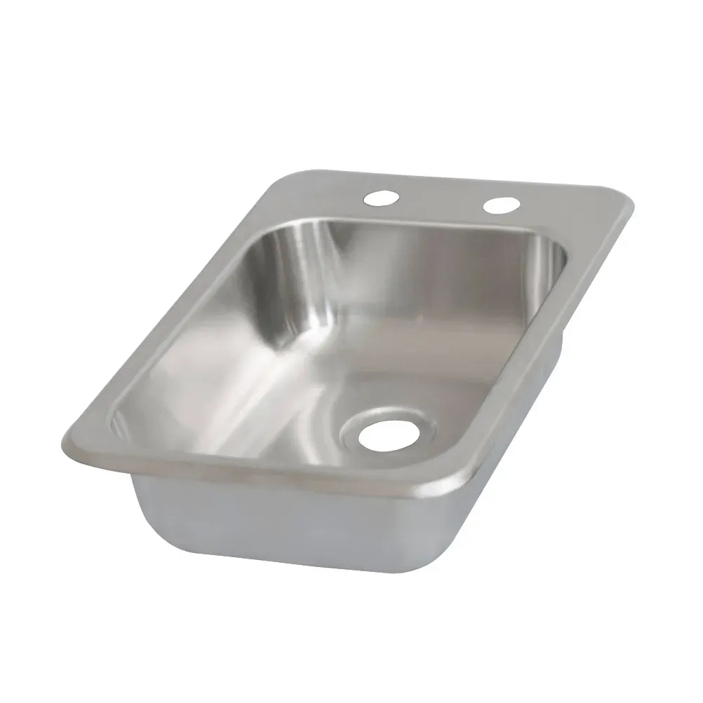 Deliver food perfection with the BK Resources, BK-DIS-1014-5D Drop-In Sink. This stainless steel sink is designed to meet the demands of a busy commercial restaurant kitchen. With its one compartment and generous dimensions of 12-1/8"W x 18-1/2"D x 5"H, it provides ample space for washing and rinsing dishes, utensils, and ingredients. The 10" wide x 14" front-to-back x 5" deep compartment is perfect for accommodating large pots and pans. The 4" OC deck mount faucet holes allow for easy installation of a faucet, ensuring efficient water flow. The sink also includes a basket drain (BKDR-4) to prevent clogs and maintain cleanliness. Made from durable 20/304 stainless steel, this drop-in sink is built to withstand the rigors of a commercial kitchen. Upgrade your restaurant's kitchen with the BK Resources, BK-DIS-1014-5D Drop-In Sink and experience the convenience and durability it offers.