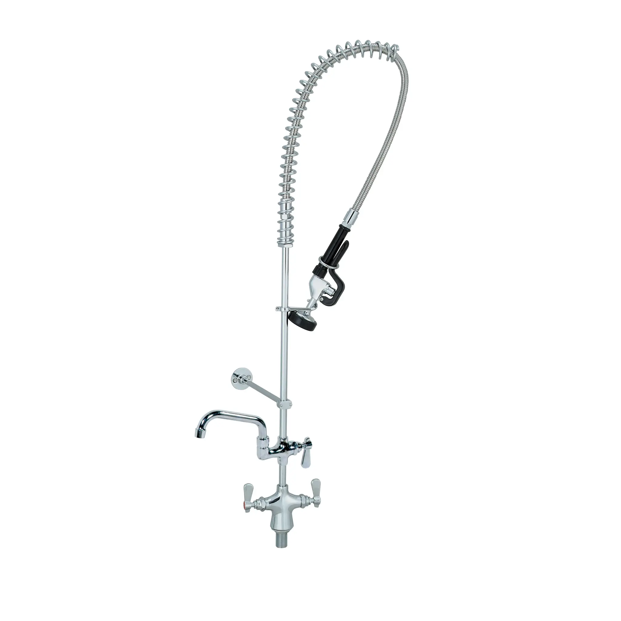 Mobilize your kitchen with the BK Resources, BKF-DMPR-WB-AF12-G Pre-Rinse Faucet Assembly, with Add On Faucet. This high-quality assembly is designed to meet the demands of a busy commercial restaurant. The OptiFlow Pre-Rinse Assembly features a 12" add-on faucet and a deck mount with a single hole center, making it easy to install and use. The triple ply hose and 12" wall bracket provide durability and stability, ensuring long-lasting performance. With 1/4 turn ceramic valves and an integral check valve, this assembly offers precise control and prevents backflow. The 1/2" female inlets and included hot & cold mixing hoses make it versatile and convenient. Plus, it is lead-free and NSF certified, guaranteeing safety and compliance with industry standards. Trust BK Resources, a reputable vendor in the restaurant industry, and equip your kitchen with this reliable pre-rinse faucet assembly.