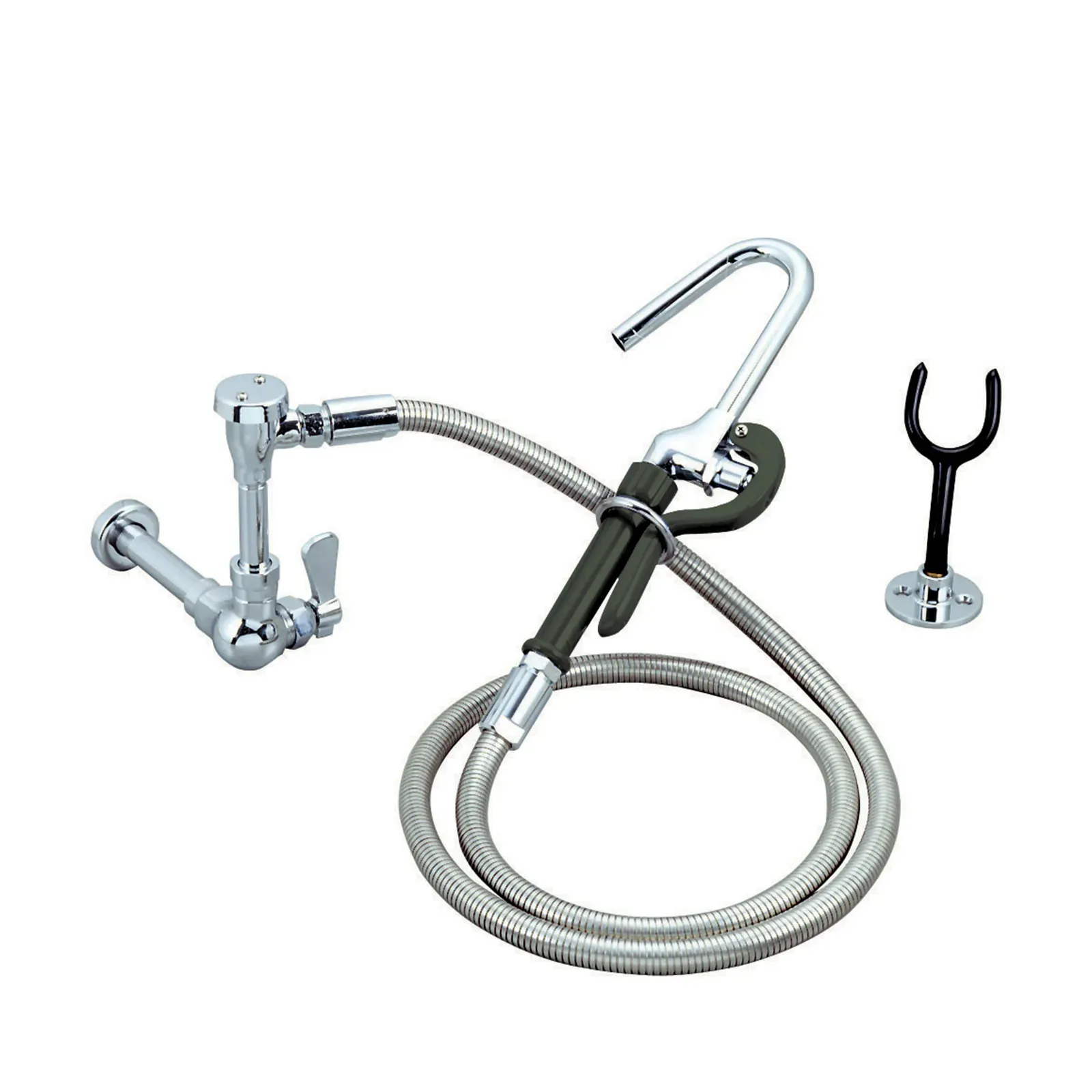 Invest in superior quality with the BK Resources, BKF-SSMPF-G Faucet, Kettle / Pot Filler. This splash-mounted pot filler is designed to meet the demands of a busy commercial restaurant kitchen. The OptiFlow Single Valve ensures precise control of water flow, allowing you to fill pots and kettles quickly and efficiently. With a single hole center design, installation is a breeze. The 72" stainless steel braided hose provides flexibility and durability, while the included wall hook keeps the hose neatly stored when not in use. The high polished nickel chrome finish not only adds a touch of elegance to your kitchen, but it is also lead-free and NSF certified for peace of mind. Whether you're filling large stockpots or boiling water for pasta, the BK Resources, BKF-SSMPF-G Faucet, Kettle / Pot Filler is the perfect addition to your commercial kitchen.