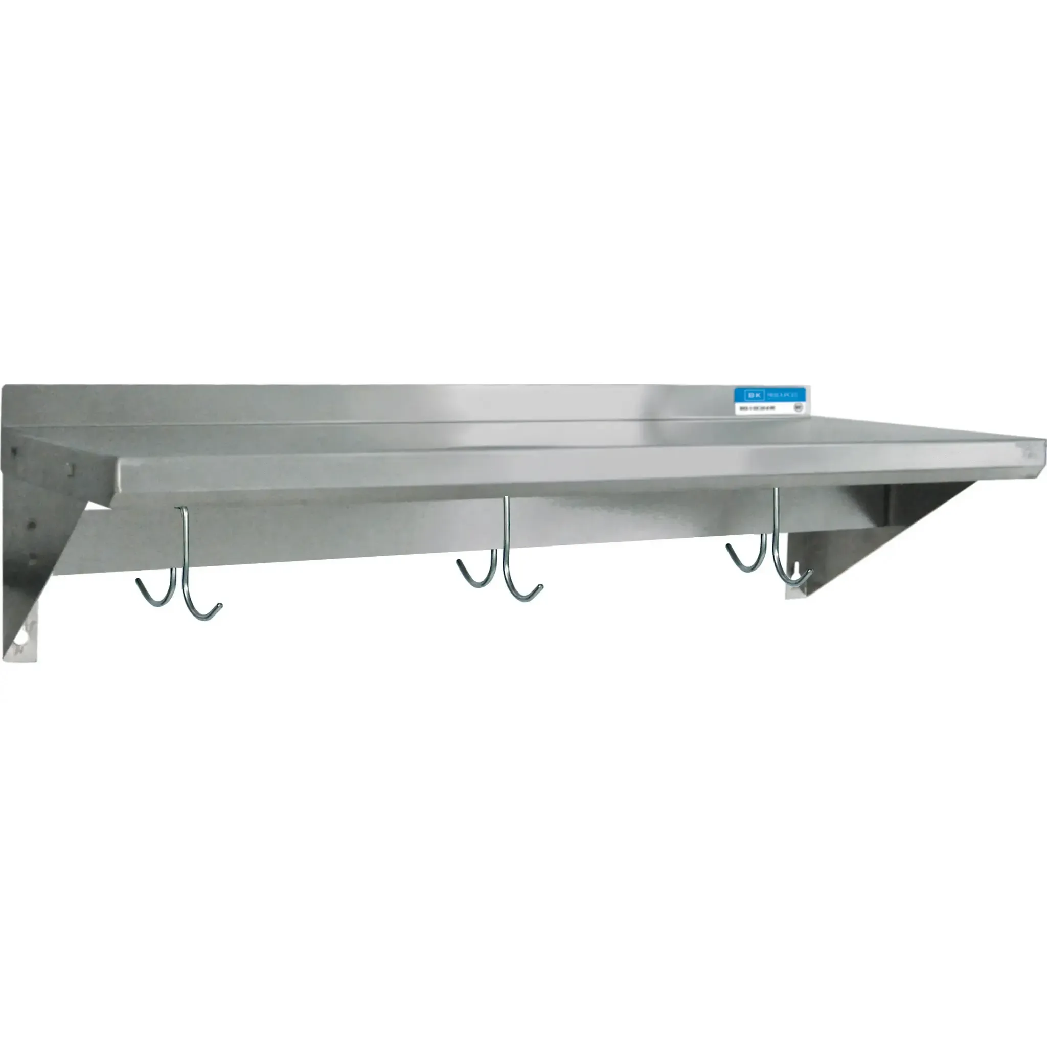 Elevate your culinary experience with the BK Resources BKWS-1636-PR Overshelf. This premium wall-mounted unit is designed to optimize space and functionality in a commercial restaurant setting. Made of durable 18/304 stainless steel, it ensures long-lasting performance and easy maintenance. The 36"W x 16"D size provides ample space for storing and displaying essential kitchen items, while the 1-1/2"H rear up-turn prevents items from falling off the shelf. The two 11-1/2" angle supports offer sturdy support, ensuring stability even with heavy pots and pans. Additionally, the three stainless steel double prong hooks (BKSSDPH) provide a convenient place to hang utensils or towels. NSF certified, this overshelf meets the highest standards of sanitation and safety. With the BK Resources BKWS-1636-PR Overshelf, you can enhance your restaurant's efficiency and organization while adding a touch of professionalism to your kitchen.