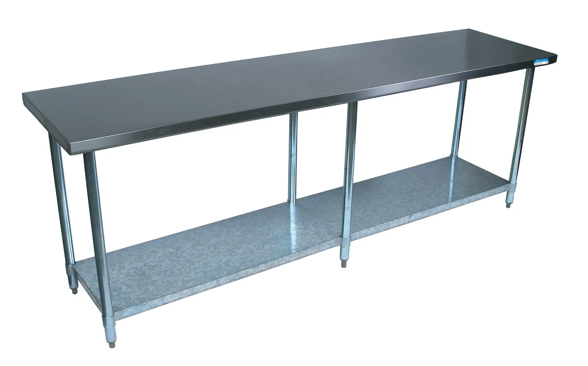 Craft culinary wonders with the BK Resources CVT-9636 Work Table. This stainless steel work table is designed to meet the demands of a commercial restaurant kitchen. With a spacious 96"W x 36"D stainless steel top, you'll have plenty of room to prep ingredients, assemble dishes, and plate meals. The top is reinforced with three 5" "C" channels for added strength and durability. The adjustable stainless steel undershelf provides convenient storage space for pots, pans, and other kitchen essentials. The table stands on six 1-5/8" diameter stainless steel legs with adjustable bullet feet, ensuring stability on any surface. NSF certified, this work table meets the highest standards of cleanliness and sanitation. Whether you're running a bustling restaurant or a busy catering service, the BK Resources CVT-9636 Work Table is a reliable and versatile addition to your kitchen.