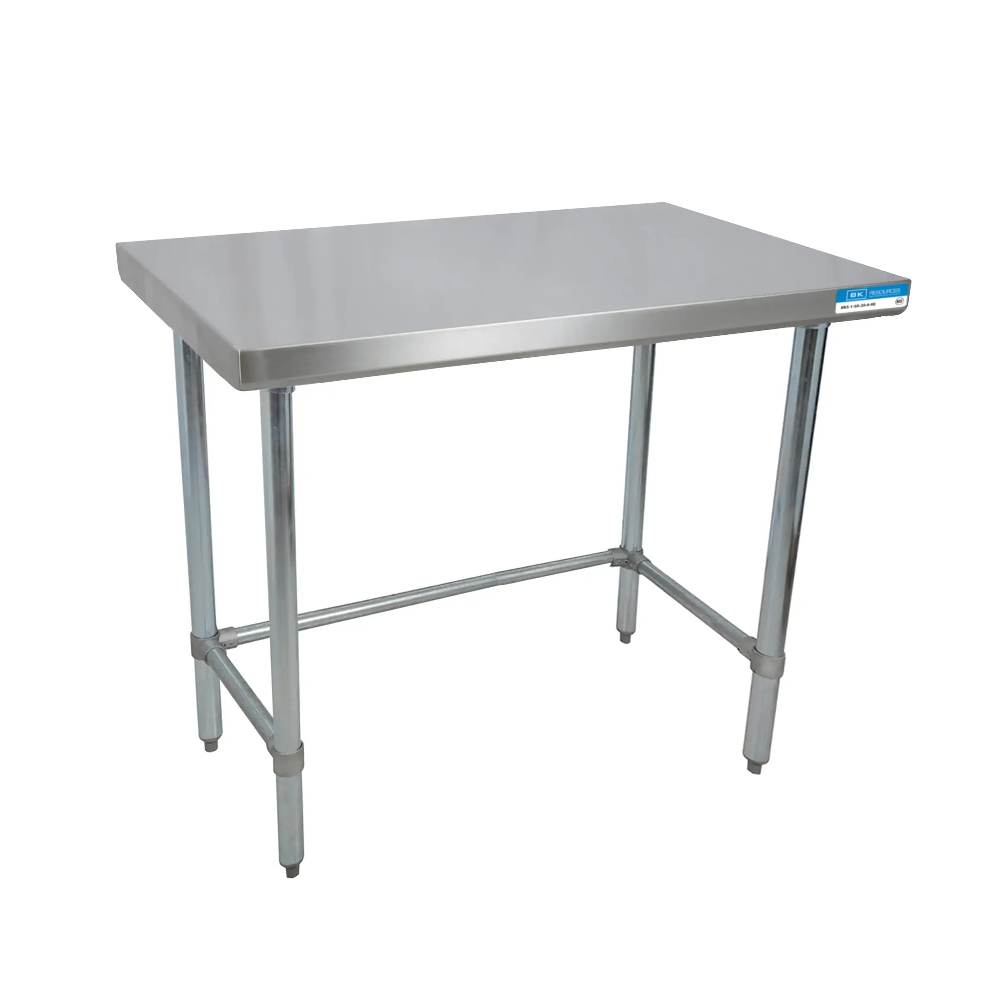 Ignite culinary passion with the BK Resources CVTOB-3624 Work Table. This stainless steel work table is a must-have for any commercial restaurant. With its 36"W x 24"D x 34-3/4"H overall size, it provides ample space for food preparation and other kitchen tasks. The 16/304 stainless steel flat top is not only durable but also easy to clean, making it perfect for busy restaurant environments. Reinforced with (2) 5" C channels, this work table offers exceptional stability and support. The open base with stainless steel side and rear bracing adds to its strength and durability. The (4) 1-5/8" dia. stainless steel legs are adjustable, allowing you to customize the height to suit your needs. With NSF certification, you can trust the quality and safety of this work table. Upgrade your restaurant kitchen with the BK Resources CVTOB-3624 Work Table and experience the convenience and efficiency it brings to your culinary endeavors.