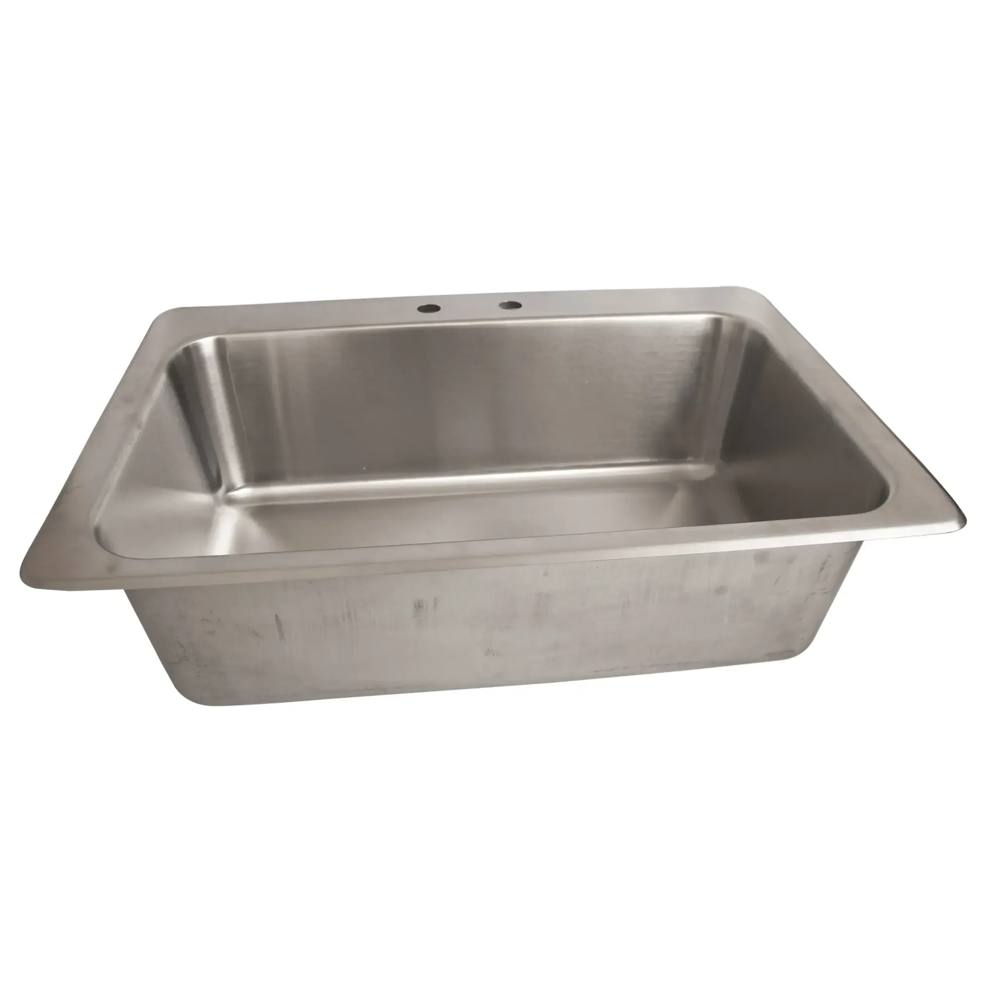 Maximize your food service potential with the BK Resources, DDI-28161028-P-G Drop-In Sink. This stainless steel sink is designed for commercial restaurant use, offering durability and functionality. The sink features a single compartment measuring 28" wide, 16" front-to-back, and 10" deep, providing ample space for washing dishes and utensils. It comes with a deck mount faucet (BK8D-8G-G) and a basket drain (BKDR-4), ensuring convenience and efficiency in your kitchen operations. The 18/304 stainless steel construction is not only lead-free but also NSF certified, guaranteeing safety and compliance with health regulations. With its drop-in design, this sink can be easily installed into your existing countertop, saving you time and money on renovations. Upgrade your restaurant's kitchen with the BK Resources, DDI-28161028-P-G Drop-In Sink and experience enhanced productivity and cleanliness.