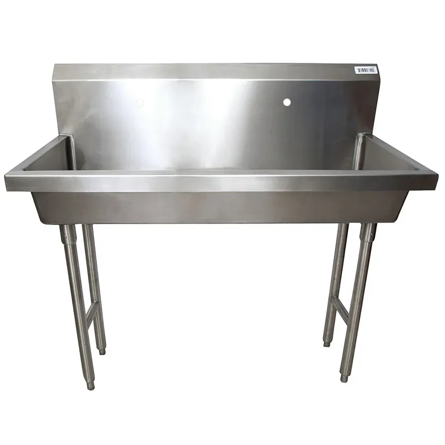 Unleash culinary creativity with the BK Resources MSHS-48F1 Handwash Sink. This freestanding sink is designed specifically for commercial restaurant use, providing a convenient and hygienic solution for handwashing. The sink features two station handwash capabilities, allowing multiple staff members to wash their hands simultaneously. The 48-inch width and 19-7/8-inch front-to-back dimension provide ample space for easy handwashing, while the 8-inch deep bowl ensures efficient water containment. Made from 14/304 stainless steel, this sink is durable and resistant to corrosion, making it perfect for the demands of a busy restaurant kitchen. The sink also includes a basket drain for easy waste disposal. With 18-gauge stainless steel legs and supports, this sink is sturdy and reliable. NSF certified, this BK Resources Handwash Sink is a must-have for any commercial restaurant looking to maintain the highest standards of cleanliness and sanitation.
