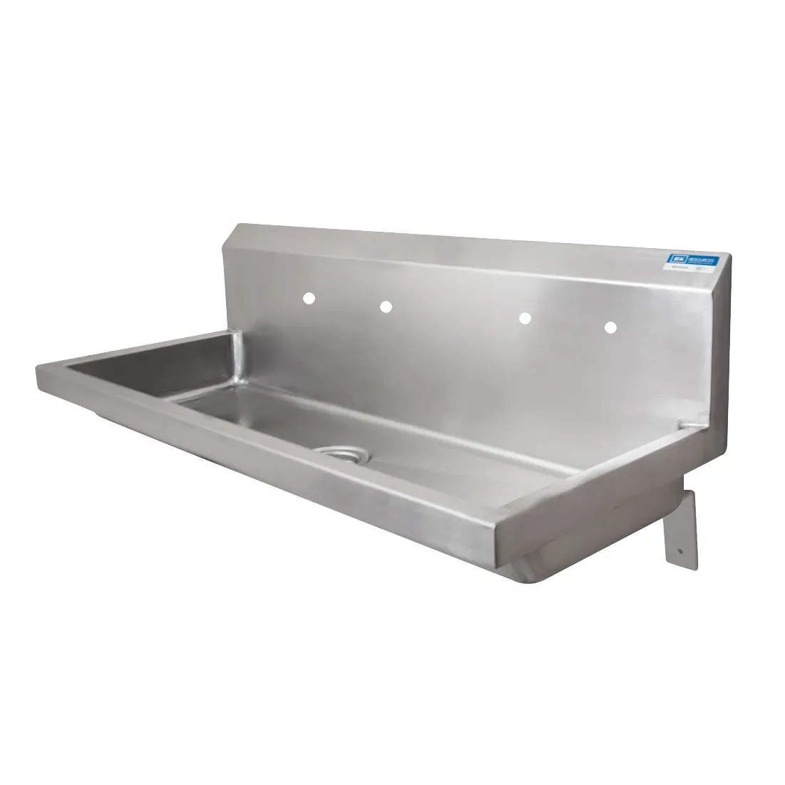 Introducing the BK Resources MSHSA-48W2 Handwash Sink, the perfect addition to dominate the culinary world. This ADA-compliant sink is designed specifically for commercial restaurant use, ensuring the highest standards of cleanliness and hygiene. With its two-station design and two sets of 8" OC splash mount faucet holes, this sink allows for efficient and convenient handwashing for your staff. The 48"W x 16-1/4" front-to-back x 5" deep bowl provides ample space for multiple users at once, reducing wait times and increasing productivity in a busy kitchen environment. Made from durable 14/304 stainless steel, this sink is built to withstand the demands of a commercial kitchen and is NSF certified for added peace of mind. The included basket drain helps prevent clogs and keeps the sink functioning optimally. With custom faucet hole configurations available and a quick 3-5 day lead time, the BK Resources MSHSA-48W2 Handwash Sink is the ultimate choice for any restaurant looking to elevate their hygiene standards and streamline their operations.