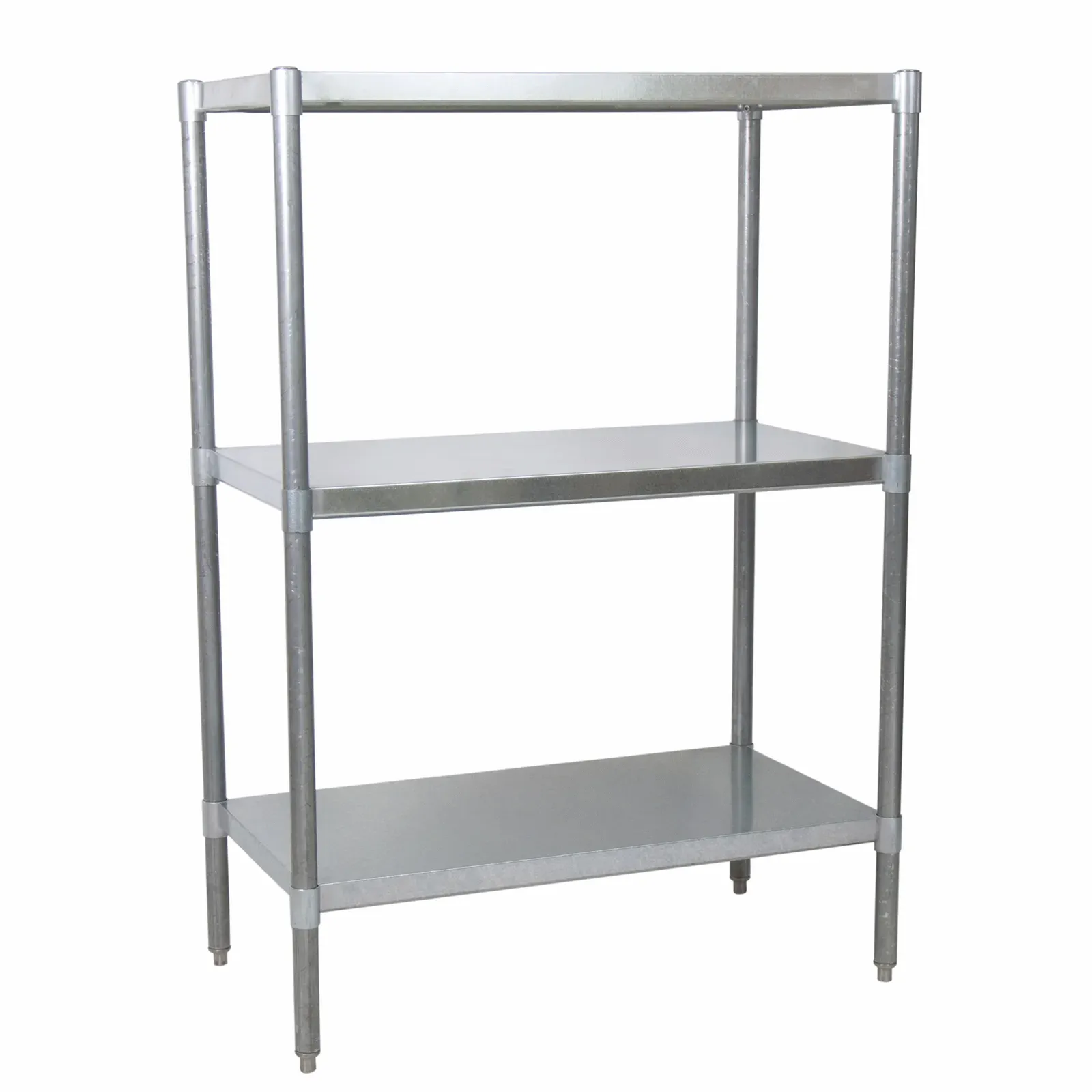 Achieve kitchen supremacy with the BK Resources VSU5-4324 Shelving Unit, Solid Flat. This dry storage shelving unit is designed to optimize space and organization in your commercial restaurant. With its dimensions of 43"W x 24"D x 60"H, it provides ample storage for your kitchen essentials. The unit comes with three adjustable shelves, allowing you to customize the space according to your needs. The galvanized shelves and legs ensure durability and resistance to corrosion, making it perfect for a busy restaurant environment. Additionally, the shelving unit is equipped with adjustable bullet feet, providing stability and easy leveling on uneven surfaces. Whether you need to store ingredients, cookware, or small appliances, this shelving unit has got you covered. Trust BK Resources, a reputable vendor in the industry, and invest in this high-quality shelving unit to streamline your kitchen operations.