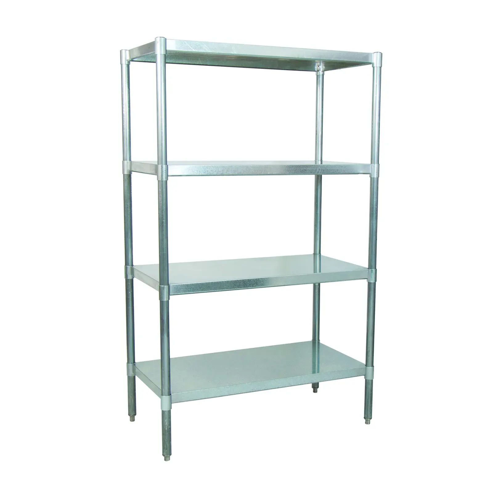Cook with precision using the BK Resources VSU6-5524 Shelving Unit. This solid flat shelving unit is designed to meet the storage needs of commercial restaurants. With its dimensions of 55"W x 24"D x 72"H, it provides ample space for organizing ingredients, utensils, and equipment. The unit comes with four adjustable shelves, allowing you to customize the storage layout to suit your specific needs. Made with galvanized shelves and legs, this shelving unit is not only durable but also resistant to corrosion, ensuring its longevity in a busy kitchen environment. The adjustable bullet feet provide stability and allow for easy leveling on uneven surfaces. Whether you need to store dry goods, cookware, or small appliances, this shelving unit is a reliable and practical choice. Trust BK Resources, a reputable vendor in the industry, and invest in this high-quality shelving unit for your restaurant's storage needs.